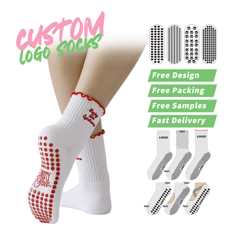 Mockup מותאם אישית לוגו ruffle צוות העליון יוגה ספורט גרביים לנשים נגד החלקה אישית אחיזת יוגה Pilates גרביים