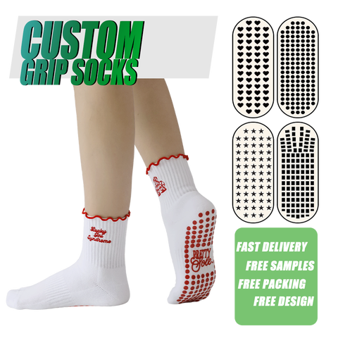 רקמה גרביונים אחיזה עבור יוגה נשים ספורט נגד החלקה גרביים ruffle העליון עיצוב מותאם אישית יוגה פילאטיס מקורה נעלי ספורט גרביים